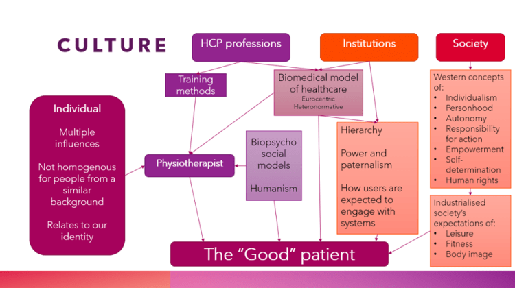 My musings are not new and culture in our profession was explored in the late 2000s through a handful if papers on the topic (Norris and Allotey, 2008; Hunt M, 2009; Remedios et al. 2009). I would like to think we have learned from these papers, but unfortunately, I still witness health inequalities where a clash of professional and individual culture could be a factor. We can be quick to label a patient as non-compliant, not engaging, and lacking rehabilitation potential because they do not fit neatly into our expectations of “the good patient”. When there isn’t a neat intersect between the culture of the physiotherapist, culture of the institution they work in and the culture of the patient, the patient is the one who risks exclusion. Did we take the extra effort to listen to their concerns, and understand where there may have been anxiety about what we are proposing? Have we lost the trust of a proportion of our patients?
